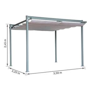 Marca: Naterial Material: Alumínio e Poliéster Dimensões: 245x320x358 cm Área de Cobertura: 11,45 m² Cor: Cinza Cobertura Retrátil: Sim Escoamento de Água: Sim Montagem: Desmontado Garantia: 36 meses (estrutura) / 24 meses (tecido)"