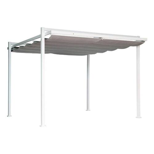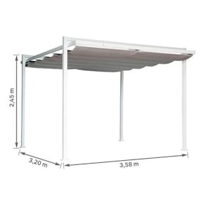 Com uma estrutura de alumínio, altura de 245 cm e dimensões generosas (320x358 cm), este pergolado oferece uma área de cobertura de 11,45 m². A cobertura retrátil em poliéster proporciona flexibilidade para ajustar conforme suas necessidades.