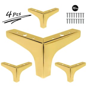 Seimneire 4 peças de pernas de móveis de 10 cm, pernas de sofá de estilo moderno, pés triangulares dourados de metal luxuosos para armário de mesa, sofá, poltrona, sofá Especificação: Material: Ferro Cor: Ouro brilhante Altura: 4" / 10 cm (incluindo a parte inferior de borracha) Espessura: 0,07" / 1,8 mm Capacidade de peso: aprox. 135 kg por perna Diâmetro do orifício de montagem grande: 0,43" / 11 mm Diâmetro do orifício de montagem pequeno: 0,24" / 6 mm Dimensão total: 4,7" x 4,7" x 4" / 12 x 12 x 10 cm (C x L x Máximo A) Conteúdo da embalagem: 4 x pernas de móveis. 16 parafusos de montagem. Avisos importantes: 1. As cores podem ter diferenças devido à diferença entre monitores, por favor entenda 2. Considere uma diferença de 1 a 2 mm devido à medição manual, certifique-se de que não se importa com isso antes de comprar. - *O que você receberá --- 4 x pernas de móveis de estilo moderno, 16 x parafusos de montagem. O tamanho total é 12 x 12 x 10 cm. A espessura das pernas dos móveis é de 1,8 mm. - *Seleção de alta qualidade --- Feito de ferro de alta dureza com durabilidade e forte capacidade de carga. A capacidade de peso é de 135 kg por perna (aproximadamente). Não há necessidade de se preocupar com a quebra devido ao peso pesado - *Excelente acabamento --- A superfície foi tratada com tinta galvanizada para que seja resistente à abrasão e corrosão sem ferrugem. Na parte inferior da perna, há uma almofada de borracha que pode proteger o chão de ser utilizado pelos móveis - *Projetado para versatilidade --- As pernas de móveis douradas brilhantes podem ser compatíveis com muitos móveis de design moderno. Portanto, é conveniente para você instalar e substituir as pernas velhas/danificadas sozinho. Não apenas perfeito para o sofá, mas também para sofá, cadeiras, assentos de amor, pufes, armários e outros móveis DIY - *Fácil de instalar: nossas pernas de metal para móveis são muito fáceis de instalar, basta aparafusá-las através dos orifícios dos parafusos fornecidos. As pernas dos móveis são compatíveis com a maioria dos móveis e podem proporcionar estabilidade para as mesas, cadeiras, sofás e outros itens que você usa.