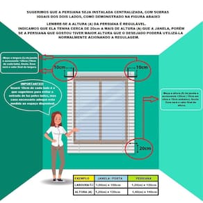 Exemplo: Janela: 120cm (L) x 100cm (A) = Persiana: 140cm (L) x 130cm (A).