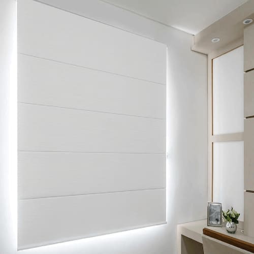 A persiana romana é formada por gomos largos e horizontais que dobram a medida que a persiana abre e fecha. O seu tecido blackout é indicado para quem busca privacidade e conforto pois bloqueia a entrada de luz e a visibilidade externa no ambiente deixando o quarto escurinho.