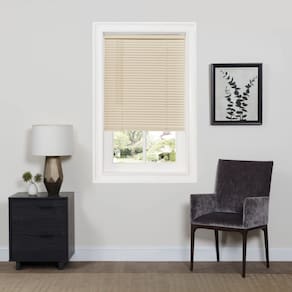 - Persianas de vinil sem fio para escurecimento de ambientes: reduza o calor e ajude a economizar na conta de eletricidade enquanto filtra a luz com as mini persianas Achim Home Decor CO GII Deluxe Sundown Cordless Room Darkening Mini Blinds. Projetadas para privacidade, estas persianas de PVC sem cabos para se emaranharem são seguras para crianças e animais de estimação. As persianas caberão em janelas de 0,95 cm menores e 1,27 cm mais largas do que o tamanho indicado. A persiana real é 1,27 cm mais estreita do que o tamanho indicado. O tamanho real da ripa é de 2,54 cm.