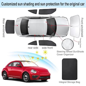 Característica: 1. Bloqueia grandes raios UV e diminui a temperatura do veículo. 2. Moldura de metal com memória fácil de ser dobrada em uma bolsa de tamanho pequeno. 3. Reduz o consumo de energia do ar condicionado. 4. Fácil de usar e armazenar —— A persiana pode ser facilmente levantada e dobrada em segundos para o uso diário. Você pode facilmente colocar o protetor solar no bolso da porta. - Design personalizado: o para-sol serve para Volkswagen VW Beetle 2012-2019. Nossa persiana de janela está de acordo com o design do tamanho do carro, ajusta-se perfeitamente ao seu carro e não precisa aparar. O para-sol do para-brisa resolve o problema de vazamento de luz e incompatibilidade dos guarda-chuvas antigos. O para-sol projetado para Volkswagen VW Beetle. - Proteção da luz solar e mantém o fresco: camada dupla de materiais de proteção térmica para reduzir o acúmulo de calor em até 4,4 °C e bloqueia mais de 99% dos raios UV prejudiciais, luz solar. A viseira solar mantém o assento traseiro fresco do seu veículo, refresca toda a temperatura interna do carro e reduz o envelhecimento interno causado pela luz solar direta. - Proteja a privacidade: este kit de para-sol de janela de 6 peças oferece cobertura total para o seu carro, fornece um ambiente de espaço de privacidade amigável, e estas capas opacas de janela de carro são perfeitas para acampar, cochilar e relaxar. - Material resistente: o pára-brisa é feito de tecido reflexivo com material reflexivo UV, isolamento térmico de camada dupla e 99% FPS para melhor dissipação de calor. A estrutura de metal é muito forte e o forro é apertado, o que ajuda a evitar flacidez enquanto é menos propenso a rugas. Design para proteger assentos de carro, peças eletrônicas, painel, volante e outros instrumentos para permanecer fresco, totalmente sombreado e não precisa se preocupar com a alta temperatura no verão. - Fácil de instalar e armazenar: design de modelo de alta precisão, se encaixa exatamente nas bordas e basta colocá-lo na janela do para-brisa do seu carro. Facilmente abre e instala em segundos, seguro e conveniente de usar. Fácil de quebrar e dobrar na bolsa de armazenamento. Dobra-se até 1/10 do tamanho autêntico para armazenamento compacto e vem com uma bolsa e bolsa de armazenamento multifuncional que você pode facilmente colocar o guarda-sol no bolso da porta ou use o multifuncional bolsa de armazenamento como capa solar de volante.
