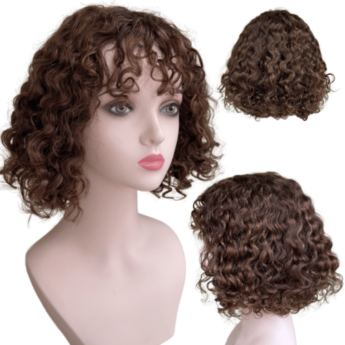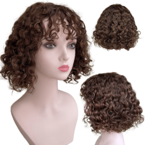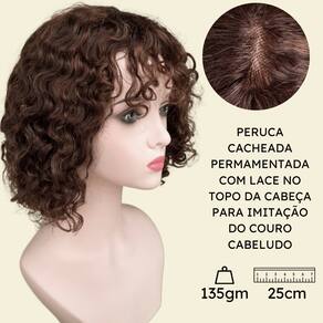 Peruca cacheada curta humana c/ franja loiro escuro castanho