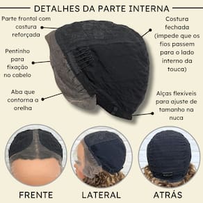 - Fibra futura; - 55cm de comprimento; - Aceita chapinha até 180ºC; - Peso 185g em média; - Possui três pentes internos para maior fixação; - Tamanho da peruca M (padrão) com alças internas ajustáveis;- Touca interna fechada (Os fios não embaraçam para dentro). Marca: Não Informado