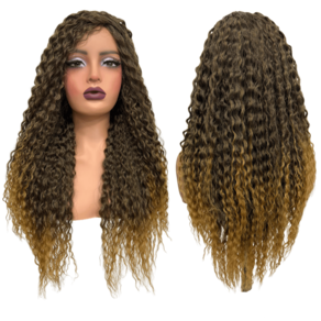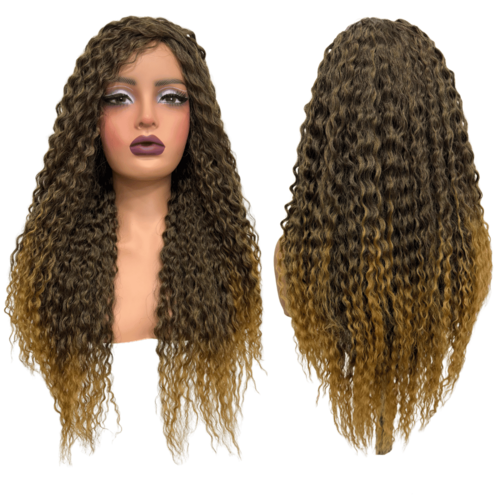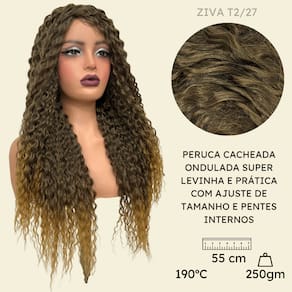 Peruca cacheada loiro escuro ombre 55cm organica T2/27 - Peruca cacheada orgânica loiro escuro ombre