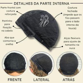 - Tamanho da peruca M (padrão) com alças internas ajustáveis;- Touca interna fechada (Os fios não embaraçam para dentro).