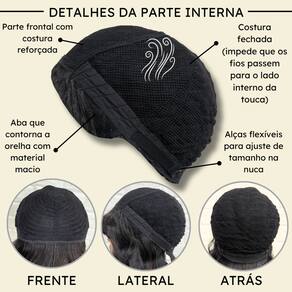 - Tamanho da peruca M (padrão) com alças internas ajustáveis;