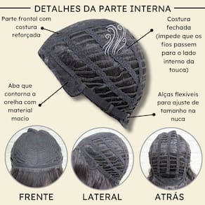 - Fibra orgânica premium; - 30cm de comprimento; - Aceita chapinha até 180ºC; - Peso 140g em média; - Possui três pentes internos para maior fixação; - Tamanho da peruca M (padrão) com alças internas ajustáveis;- Touca interna vazada (maior conforto, ventilação e flexibilidade). Marca: Não Informado