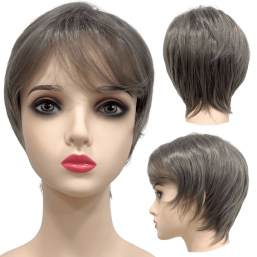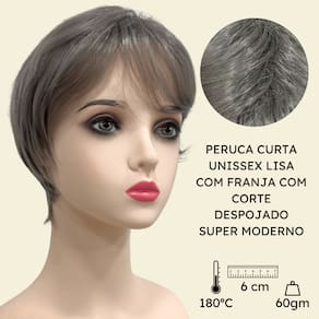 Peruca curta cinza com franja unissex orgânica lisa repicada