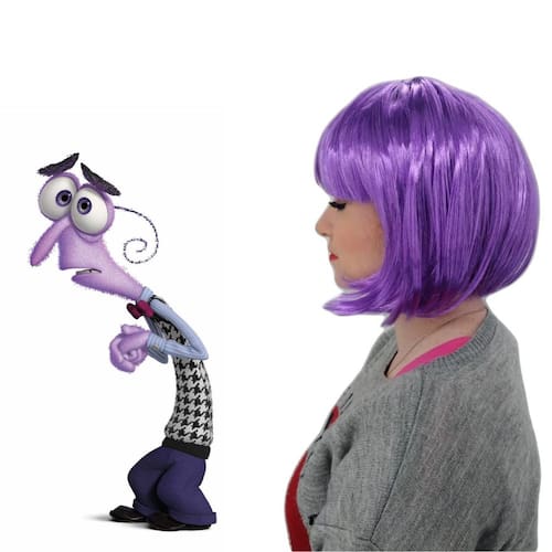 Peruca curta lilás para cosplay divertidamente emoção medo