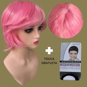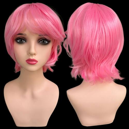 Peruca curta repicada lisa media cosplay personagem anime - Cor: Rosa pink Sakura