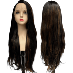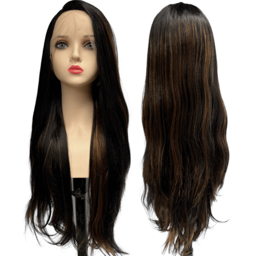 Peruca front lace HD orgânica preto com mechas claras 1B2730
