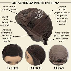 - Tamanho da peruca M (padrão) com alças internas ajustáveis.