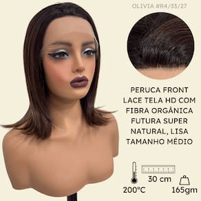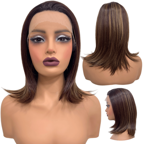Peruca front lace media curta 13x1 castanho luzes R4/33/27
