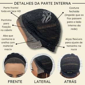 - Tamanho da peruca M (padrão) com alças internas ajustáveis.