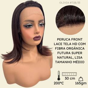 - Fibra 100% orgânica futura; - 30cm de comprimento; - Aceita chapinha até 200º; - Front Lace 13x1 com tela HD; - Possui três pentes internos para maior fixação; - Peso do produto 165gm em média; - Tamanho da peruca M (padrão) com alças internas ajustáveis. Marca: LIONSWIG
