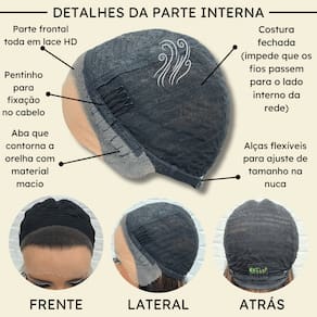 - Fibra 100% orgânica futura; - 30cm de comprimento; - Aceita chapinha até 200º; - Front Lace 13x1 com tela HD; - Possui três pentes internos para maior fixação; - Peso do produto 165gm em média; - Tamanho da peruca M (padrão) com alças internas ajustáveis. Marca: LIONSWIG