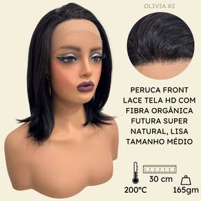 - Fibra 100% orgânica futura; - 30cm de comprimento; - Aceita chapinha até 200º; - Front Lace 13x1 com tela HD; - Possui três pentes internos para maior fixação; - Peso do produto 165gm em média; - Tamanho da peruca M (padrão) com alças internas ajustáveis. Marca: LIONSWIG