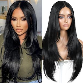 Nome do produto: Peruca em camadas sem cola Material: Fibra de cabelo humano semelhante Comprimento: 66 cm Peso: 280 g Área de renda: 13x5x1 Touca da peruca: Boné atualizado com elástico ajustável (53,3 cm-58,4 cm) Ocasiões: todas Embalagem: 1 peruca, 2 tampas de peruca, manual do usuário, 1 pente de dente largo - Perfeita para todos: uma peruca frontal de renda sintética sem cola, 66 cm oferecendo um visual glamoroso, pesando apenas 240 g, uso durante todo o dia sem pesar. Design adequado para iniciantes acessível para qualquer ocasião - de passeios casuais a eventos especiais - Basta usar e ir: nossas perucas sem cola têm renda pré-cortada que pode alcançar um visual deslumbrante em segundos! A linha do cabelo pré-arrancada imita a aparência do crescimento natural do cabelo. Pré-colorida e pré-estilizada, basta colocá-la e desfrutar de um visual impecável instantaneamente! - Fibras sintéticas premium: perucas frontais de renda sintética ENCOUNTERU usando fibra sintética resistente ao calor que suporta calor até 160° C (160.0 °C). Fácil de pentear, não embaraçar facilmente e perder cabelo, macio e honestamente sentido como cabelo humano, desfrute de estilos deslumbrantes sem comprometer a qualidade! - Touca de peruca sem cola atualizada: a faixa elástica ajustável e os 3 pentes são projetados para se ajustarem com segurança, adequados para a maioria dos tamanhos de cabeça (53 a 58 cm), se você estiver usando por algumas horas ou o dia todo, você apreciará a sensação leve e o ajuste seguro - Serviço caloroso: cada peruca ENCOUNTERU é cuidadosamente testada antes do envio. Se você tiver alguma dúvida sobre a peruca, instalação ou manutenção, não hesite em pedir ajuda