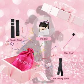-?Cinco acessórios?1. Bolsa de armazenamento, feita de material de seda, pode guardar perucas como presente para familiares e amigos; 2. Boné de peruca, conveniente de usar; 3. Elástico, ajuda a manter sua peruca no lugar e a alterar a firmeza para caber na circunferência da cabeça; 4. Escova Hair Line, pode arrumar sua peruca pré-arrumada com cabelo de bebê; 5. Alças antiderrapantes, podem ajudar você a usar perucas com mais eficiência e evitar para que não caiam.