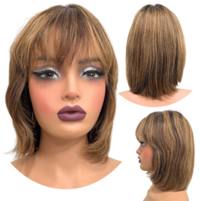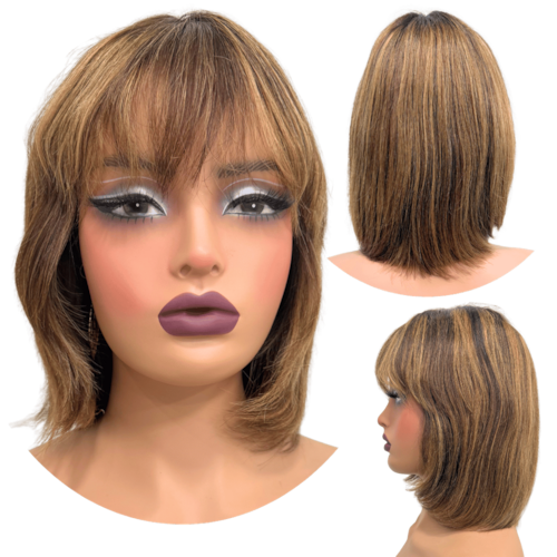 Peruca humana curta bob franja 25cm loira mechas F2/10 - Peruca cabelo humano curto com franja loira com mechas