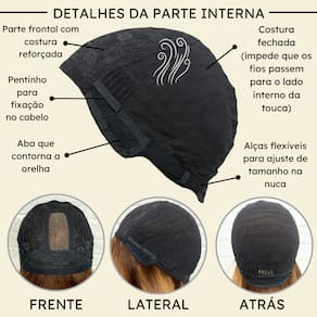 - Tamanho da peruca M (padrão) com alças internas ajustáveis.