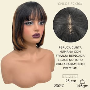 Peruca humana curta bob franja 25cm preta mecha loira F2/30 - Peruca de cabelo humano curta com franja