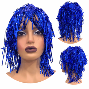 Peruca metalizada festa fantasia carnaval franja colorida - Cor: Azul escuro