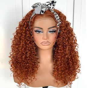 MITIMES Peruca de gengibre encaracolado sem cola pré-arrancada Wear And Go Peruca frontal de renda sintética HD 33 x 15 camadas peruca afro encaracolada para iniciantes 45,7 cm