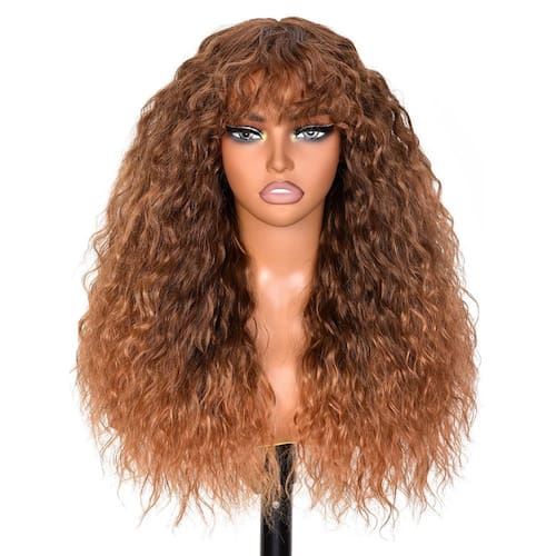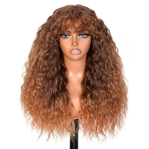 Muswanna Ombre Browm Perucas encaracoladas com franja para mulheres peruca de renda longa encaracolada para uso diário - Novo estilo: esta peruca longa e encaracolada foi feita de fibra premium e cabelo humano Remy, possui um toque "semelhante ao cabelo humano", combinado com o excepcional poder duradouro das fibras premium. Diga adeus aos emaranhados bagunçados ou perca seu estilo ao longo do dia. Abrace a beleza que permanece impecável de manhã à noite - Linha de cabelo de renda realista: Esta peruca cacheada foi feita com linha de cabelo de renda. Seu design de renda HD retangular exclusivo combina perfeitamente com o seu tom de pele, criando uma ilusão do cabelo brotando direto do seu couro cabeludo. - SEM HABILIDADE: A peruca encaracolada com franja não requer experiência para instalação, tornando a peruca ondulada de água ideal para iniciantes e fácil de gerenciar - CENÁRIO DOS EUA: Esta peruca encaracolada com franja é adequada para uso diário, mas também para festas, viagens, casamentos, escola e assim por diante! - Touca de peruca confortável: a touca respirável (53 cm - 57,7 cm) possui várias tiras de ajuste e clipes na parte superior, traseira e laterais para um ajuste seguro. Desenvolvida com a contribuição de milhares de clientes dos EUA e centenas de testes e melhorias, nossa touca de peruca é projetada para o máximo conforto, estabilidade e compatibilidade. D D