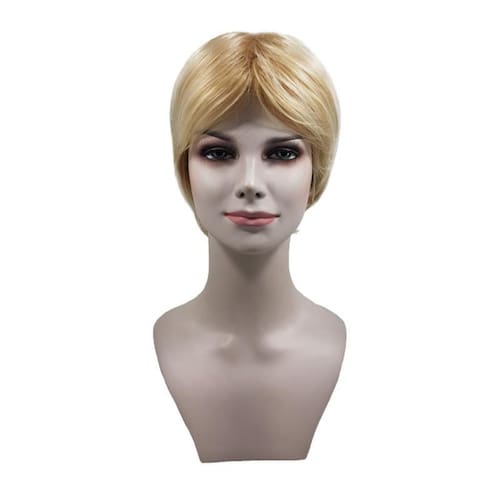 O modelo Nicole é feito com uma fibra orgânica de alta qualidade que aceita até 180ºC,feita a mão, ela possui um comprimento curto,com uma franja lateral.