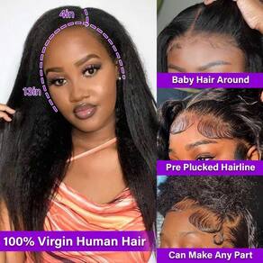 - Perucas de cabelo humano liso Kinky Lace Front Tamanho: Touca de peruca flexível ajustável tamanho único para todas varia de 21,5 a 23 polegadas Ajuste em diferentes tamanhos de cabeça ao usar alça ajustável com ganchos para definir o tamanho da cabeça do perímetro até que caiba em você, 3 clipes seguros
