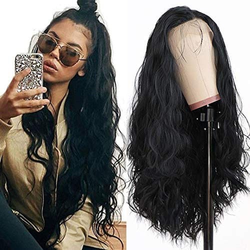 Estilo de cabelo: Preto Longo Solto Ondulado Cabelo Peruca Colada Lace Perucas Dianteiras.