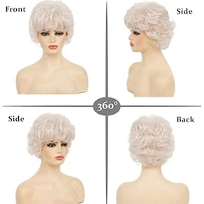 Estilo de cabelo: Perucas curtas de prata encaracolada.