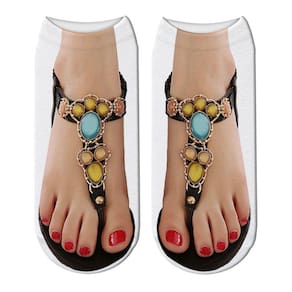 Pés humanos engraçados em sandálias Meias para pessoas com pés feios Presentes para amigos Ponto de venda: Se você tem coisas ruins nos pés que fazem seus pés parecerem ruins ou qualquer outra coisa, é provável que você não goste de andar descalço ou usar sandálias. Felizmente, os pés de outra pessoa eram terrivelmente feios, então eles fizeram essas meias exclusivas que retratam lindos pés femininos humanos usando sandálias, que pintaram perfeitamente as unhas dos pés. Meias de sandália. Já experimentou a sensação de usar apenas meias engraçadas no meio da panturrilha, mas sem sapatos Coloque essas meias de chinelos novas e interessantes, você terá a sensação de usar chinelos, deixe você ser um vencedor da moda no verão. As meias são macias, confortáveis, elásticas e respiráveis. Sem desbotamento e eles aguentam bem na lavanderia. As meias engraçadas que parecem sapatos podem ser a escolha de presente perfeita para seus entes queridos nos feriados, como o Dia das Meias Loucas, um Aniversário, Aniversário, Casamento, etc. O pacote inclui: 1 par de meias