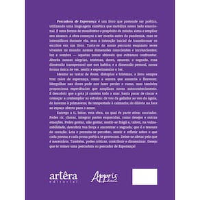 Pescadora de Esperança é um livro que pretende ser poético, utilizando uma linguagem sintética que mobiliza nosso lado emocional. É uma forma de manifestar o propósito da minha alma e ampliar seu alcance. A obra começou a ser escrita antes da pandemia, mas se intensificou durante ela, sem a intenção inicial de transformar os escritos em um livro. Trata-se do nosso percurso enquanto seres viventes no mundo: nossas dimensões conscientes e inconscientes; luz e sombra ? aquelas zonas abissais que evitamos confrontar. Aborda nossas alegrias, tristezas, dores, amores; o sagrado, essa dimensão transpessoal que nos habita; e a dimensão pessoal, nossa forma única de ver, sentir e experimentar o Ser. Mesmo ao tratar de dores, distopias e tristezas, o livro sempre traz raios de esperança, como a aurora que anuncia o florescer. Mergulhar nas dores pode nos fazer perder o rumo, mas também proporciona experiências que ampliam nosso autoconhecimento. É descobrir que a gota já contém todo o mar, basta parar de ciscar e começar a contemplar as estrelas: do voo da galinha ao voo da águia, do inverno à primavera; da tempestade à calmaria; do dilúvio na face ao espaço aberto para o amor. Entrego a ti, leitor, esta obra, na qual és parte ativa: cocriador. Podes rir, chorar, integrar partes esquecidas, como desejos e outras emoções. Podes gostar, não gostar, sentir-se frágil e, talvez, na vulnerabilidade, descobrir tua força e encontrar o sagrado, que é o tesouro do coração. Leia e permita-se perceber, sentir e refletir sobre o que cada poema e cada prosa poética te provocam. Deixe-se afetar pelo que é necessário. Também, podes criticar, contribuir e disseminar. Desejo que te tornes uma pescadora ou pescador de Esperança!