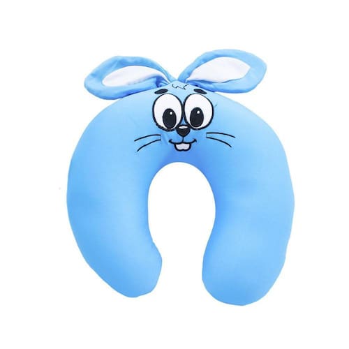 Pescoceira azul na cor do Sansão. A pescoceira vem estampada com rosto do coelhinho da Mônica e orelhas para fora. Use para viagens longas e cansativas e evite dores no pescoço, encontrando posições para dormir mais fácil