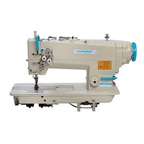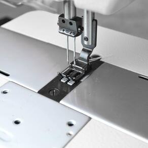 A Pespontadeira 2 agulhas barra fixa para tecidos pesados Bracob está equipada com 2 lançadeiras grandes (Jumbo) que operam com bobinas grandes e reduzem o tempo de parada para troca. Ideal para a confecção de jeans, bonés e jaquetas.