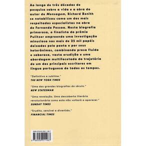 Se levássemos em conta todos os personagens fictícios que povoaram a mente de Fernando Pessoa, o número ultrapassaria a marca dos cem nomes. Ainda que três deles ? Alberto Caeiro, Ricardo Reis e Álvaro de Campos ? tenham se destacado como seus heterônimos mais prolíficos e celebrados, esse dado revela a intensa vida interior de um poeta que foi regido por uma imaginação pulsante e irrefreável. Ao longo de mais de três décadas, Richard Zenith se notabilizou como um dos mais respeitados especialistas na obra do autor de Mensagem. Em Pessoa: uma biografia, o norte-americano radicado em Lisboa empreende uma pesquisa monumental nos mais de 25 mil papéis deixados pelo poeta, combinando prosa saborosa e vasta erudição. Finalista do prêmio Pulitzer 2022 e eleito um dos melhores livros do ano por publicações como The New York Times, The Spectator, The NewStatesman, Kirkus Reviews e Publishers Weekly, Pessoa: uma biografia é um tour de force da história cultural e das biografias literárias. Uma verdadeira obra-prima.