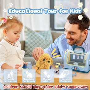 As crianças podem experimentar várias atividades de cuidados com animais de estimação, incluindo higiene, alimentação e tratamento. No processo, as crianças aprenderão gradualmente as habilidades de cuidar dos cães e desenvolverão empatia. Além disso, este kit médico de dramatização para crianças ajuda a melhorar suas habilidades sociais, coordenação olho-mão e capacidade de reconhecimento.