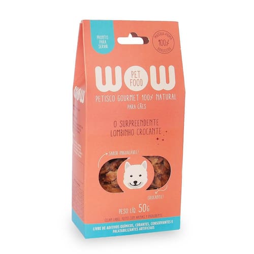 Petisco Natural Wow Pet Food De Lombinho Para Cães 50G Petisco 100% Natural para cães feito de lombinho suíno e nada mais 100% natural, livre de conservantes, palatabilizantes, corantes e aditivos químicos Petiscos deliciosos também podem ser saudáveis Matéria prima 100% brasileira. Produto pronto para servir. Embalagem de 50g. Marca: Wow Pet Food
