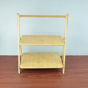 Estrutura de 2 Andares: Maximiza o espaço para dispor alimentos de maneira organizada e elegante, criando uma apresentação visualmente atraente. Material em Bambu Natural: Bambu resistente, fácil de limpar e com tom acolhedor que harmoniza com estilos de decoração variados. Alça Superior Prática: Facilita o transporte seguro e prático da cozinha para a mesa. Pés de Apoio Estáveis: Garantem uma base firme e elevada, conferindo estabilidade e um visual sofisticado. Informações Técnicas: