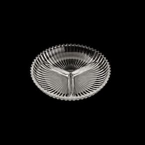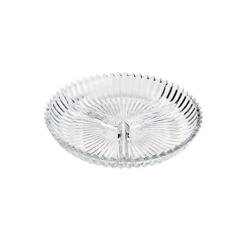 A Petisqueira 3 divisórias cristal Charmy 22×3,5cm Lyor é uma linda e prática petisqueira em cristal tradicional transparente trabalhado, com 3 divisórias e tamanho ideal para servir os seus convidados. Esta charmosa peça irá embelezar a sua mesa. Composição: Cristal Medidas: Diâmetro: 22 cm Altura: 3,5 cm Peso: 824 gramas