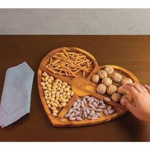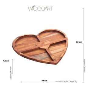 Petisqueira de Madeira em formato de coração, com 4 divisões, para servir diversos tipos de patês, queijos, torradas em um único recipiente e com requinte! A madeira Teca é reconhecida em todo o mundo como madeira tropical, dura e de alta qualidade. Essas tábuas são produzidas com esse material para garantir durabilidade, estabilidade e resistência ao ataque de cupins, brocas e outros insetos.