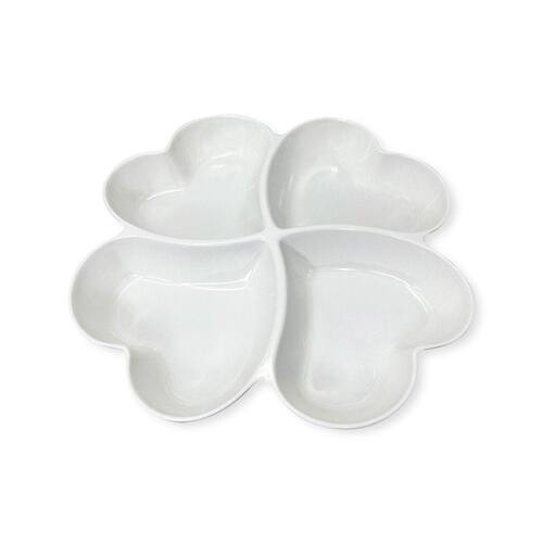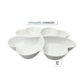 Petisqueira 4 Divisórias formato de Coração 27cm Essa petisqueira é perfeita quem preza pela elegância na hora de receber seus convidados em casa, fazer festas, reuniões e até mesmo num encontro a dois. Deixe sua mesa linda e charmosa, recheada com petiscos deliciosos. Pode ser utilizada para servir salgados, aperitivos, queijos e fondues Salgados e Doces. Possui 4 divisórias em formato de coração, deixando a apresentação mais elegante. Feita em Melamina traz uma maior durabilidade ao produto e fácil de higienizar.