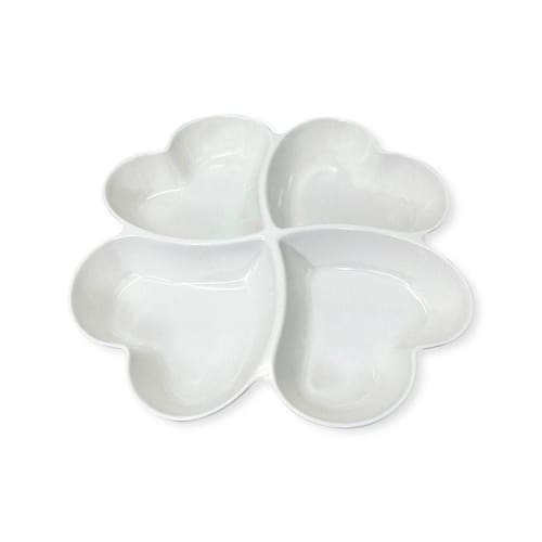 Petisqueira 4 Divisórias formato de Coração 27cm Essa petisqueira é perfeita quem preza pela elegância na hora de receber seus convidados em casa, fazer festas, reuniões e até mesmo num encontro a dois. Deixe sua mesa linda e charmosa, recheada com petiscos deliciosos. Pode ser utilizada para servir salgados, aperitivos, queijos e fondues Salgados e Doces. Possui 4 divisórias em formato de coração, deixando a apresentação mais elegante. Feita em Melamina traz uma maior durabilidade ao produto e fácil de higienizar. ESPECIFIÇÕES: - Material: Plástico Melanima - Dimensões: 27,5cm diâmetro x 3,2cm profundidade - Peso: 255g (aprox.) - Cor: Branco CONTÉM: 01 Petisqueira 4 divisórias com formato Coração