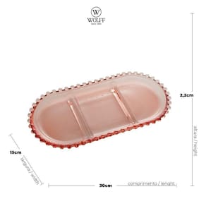 Dê um toque de sofisticação às suas reuniões e momentos especiais com a Petisqueira Cristal Oval Pearl Rosa da Wolff. Com design elegante e bordas decoradas em pérolas, esta peça refinada é ideal para servir petiscos, aperitivos e doces com charme e requinte.