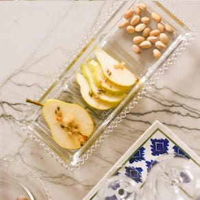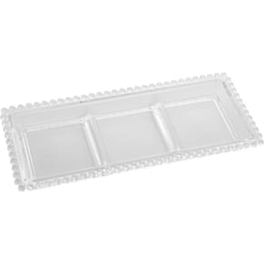 Petisqueira Cristal Wolff Pearl 3 Divisórias 30x13cm Incolor Petisco Relevo Mesa Posta.