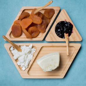 Com a Petisqueira de Bambu Hexagonal Desmontável da OIKOS você deixará seus petiscos sempre à mão.
